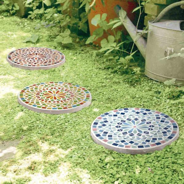 カラフルなモザイクガラスでお庭をおしゃれに ステップストーン 同色3枚セット 送料無料 敷石 おしゃれ モザイク調 Kh オブジェ 輸入 Kh 置き物 オーナメント Kh フットステップ 踏み石 キシマ