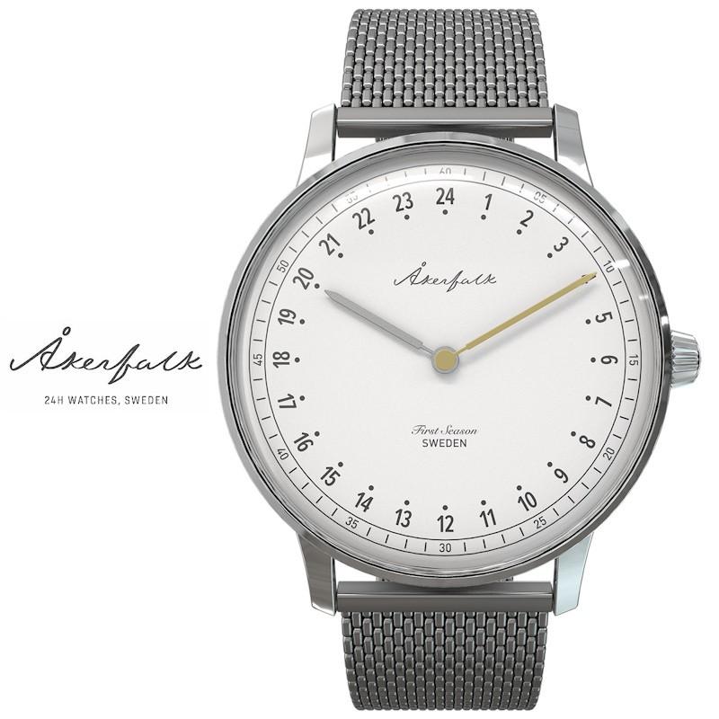正規販売店 の Kerfalk オーカーフォーク腕時計24時間表示シルバーak 101 白文字盤北欧デザインウォッチレザーケース付日本正規販売店新素材 新作の